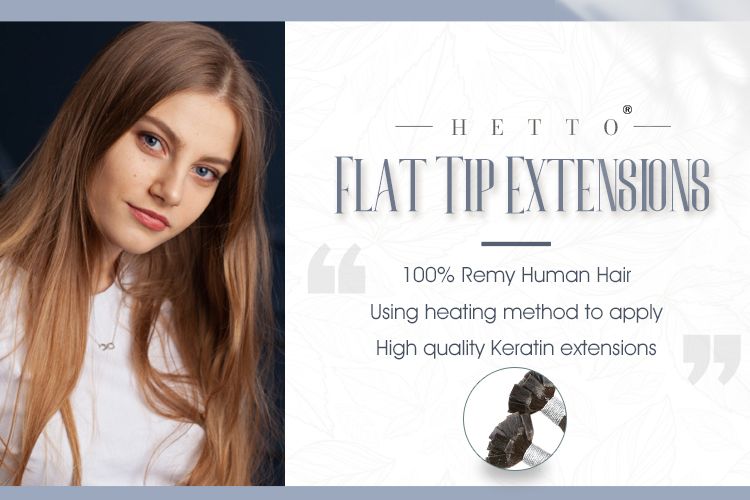 Flat Tip also called fusion bond extensions. It can be bonded to your hair with a specialised heat tool which fuses the tip of the extension strand to your own hair. Fusion bond extensions are made with keratin glue.