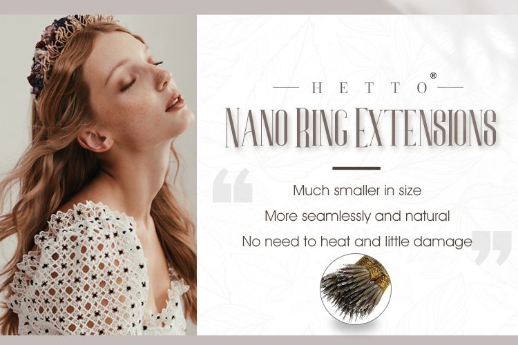 Nano Ring hair extensions, a kind of pre bonded fusion tipped hair extensions with nano bead, are more invisible and undetectable methods of installation. The essential difference is that nano rings are 90% smaller than regular application rings.