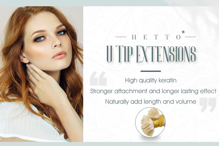 U Tip hair extensions is a type of hair extension that is applied to the hair by heating up the keratin tip that is found at the end of the extension, to attach it to your natural hair. It can provide the strongest attachment and longest-lasting effect.