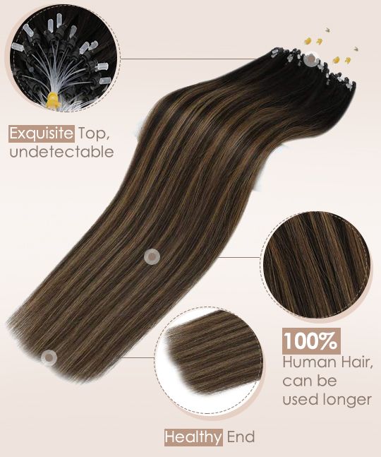 Pre Bonded Micro Ring 100% Real Human Hair Darkest Brown Balayage Medium Brown Highlight #2/6/2